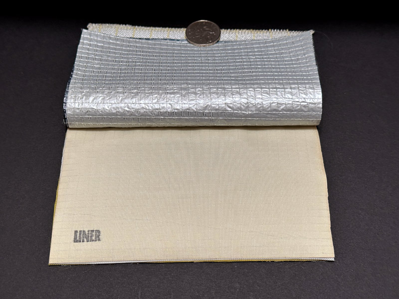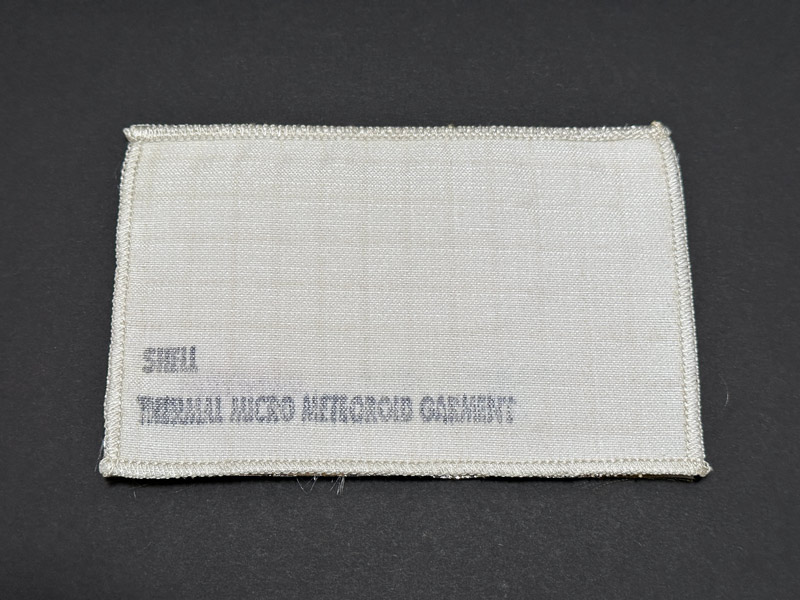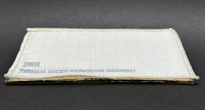 This sample of SpaceSuit material includes all the layers of the Space Shuttle EMU (Extra vehicular Mobility Unit) suit.