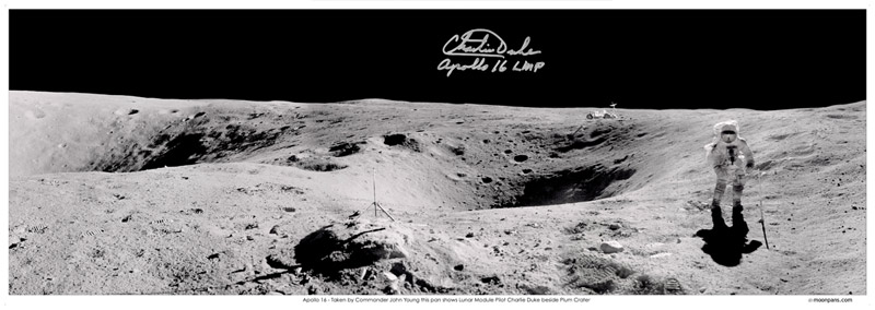 Charlie Duke signed 23x8 inch Plum Crater Panorama
