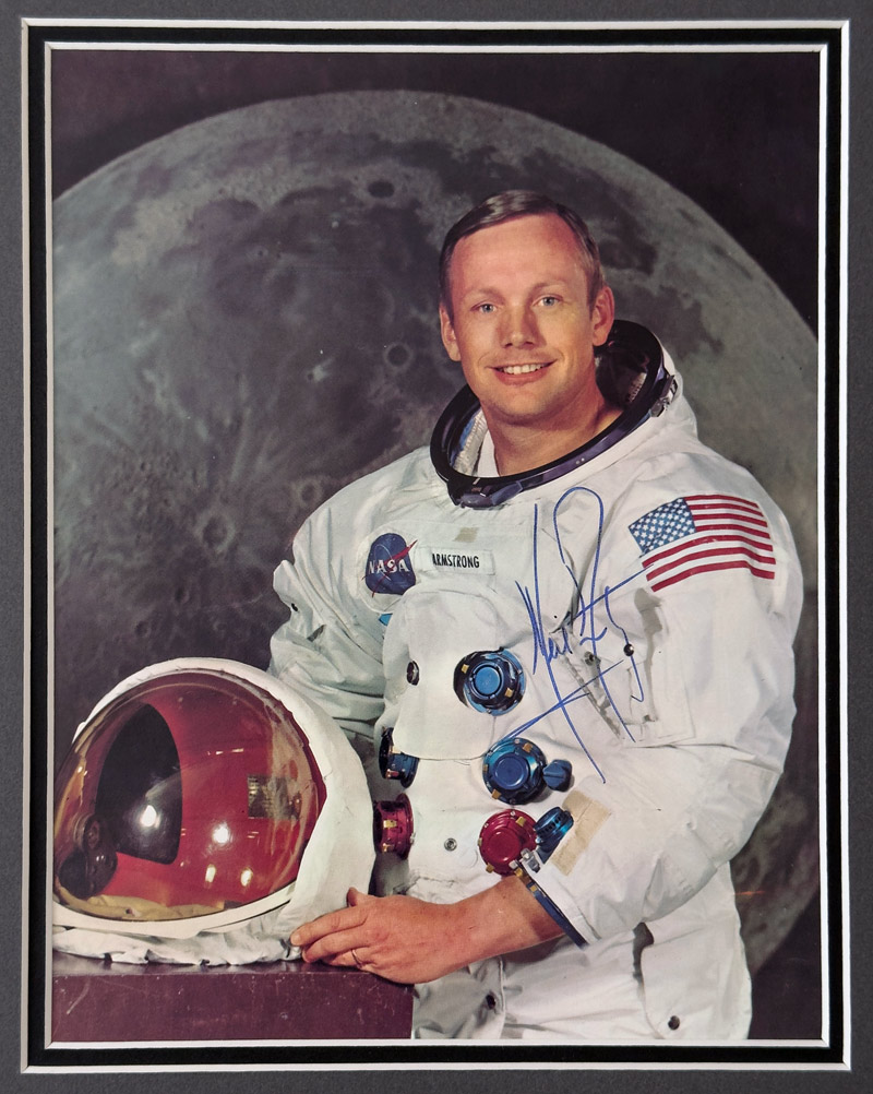 Apollo 11 Autographs are some of the most highly sort after signatures in autograph collecting. Being the first manned mission to land on another planetary body in July 1969 made Apollo 11 an historic moment in human evolution and one of the most iconic events of the 20th Century. Of the Apollo 11 Crew it is the Neil Armstrong autograph that is the feature item which in itself is one of the holy grails of space collecting. There are many Armstrong forgeries out there, but you can be rest assured that this Armstrong autograph along with the Aldrin and Collins are the real deal and have all been authenticated by Astronaut Autograph authenticator Steve Zarelli.