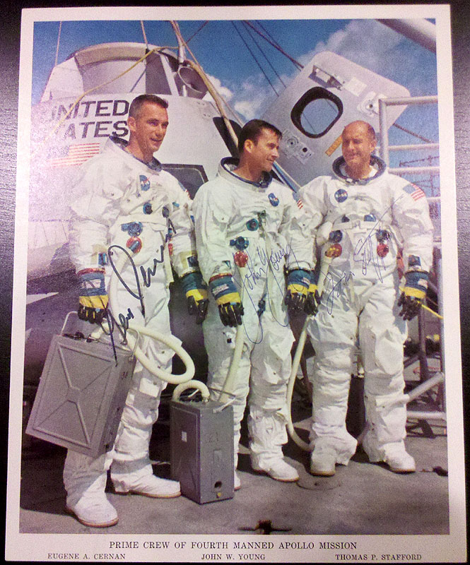 Original NASA Litho, hand signed by Apollo 10 Crew - Gene Cernan, John Young and Tom Stafford