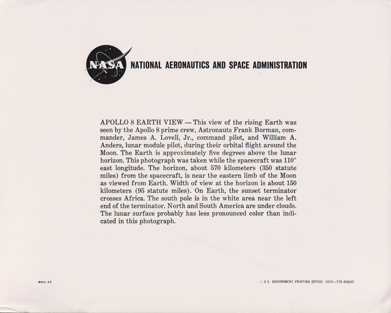 Apollo 8 Earthrise NASA Litho Signed by Frank Borman 10x8 inch