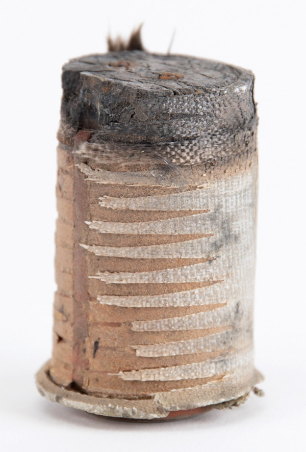 Heatshield plugs are made of a lightweight fiberglass 'honeycomb', which is hand-filled with an ablative resin material. They were used to cover bolts in the heatshield, to protect them from the heat of re-entry