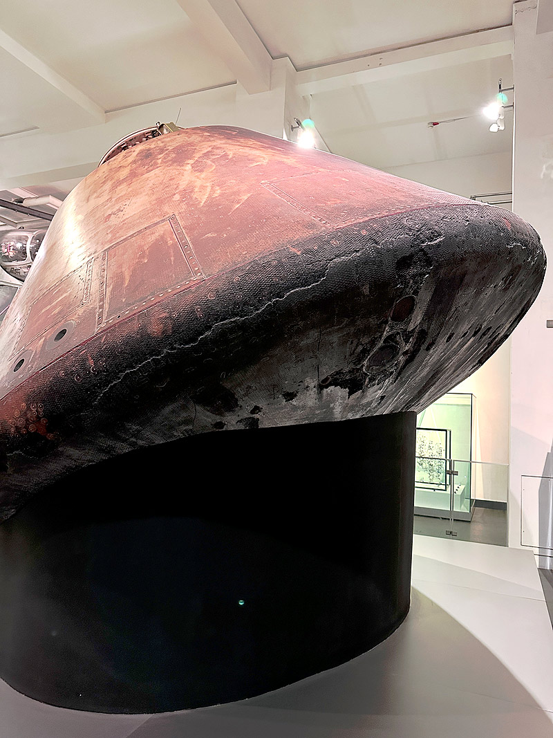 The Apollo 10 Command Module in the London Science Museum - Showing the holes in the heatshield, one of which this plug originated.