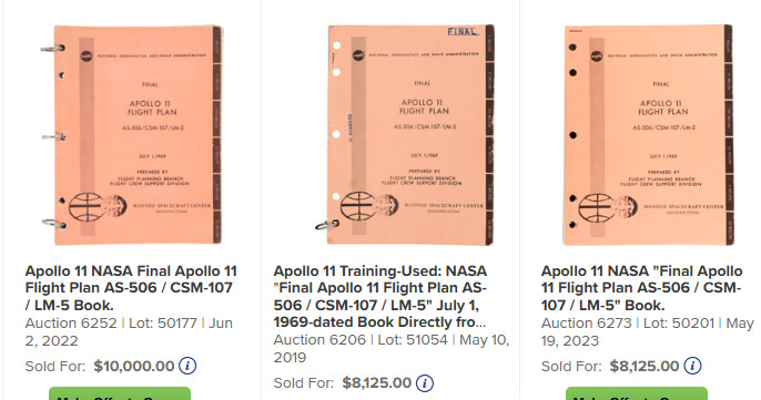 Apollo 11 Flight Plans have sold for up to $10,000 at auction