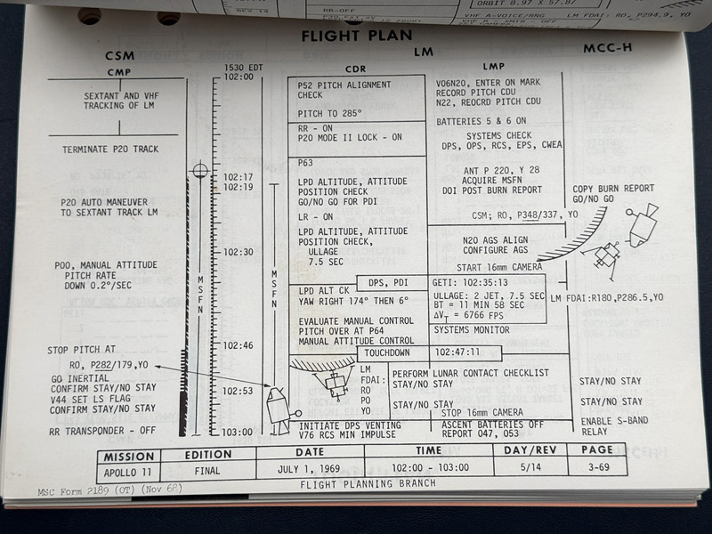Original Vintage Apollo 11 Final Flight Plan