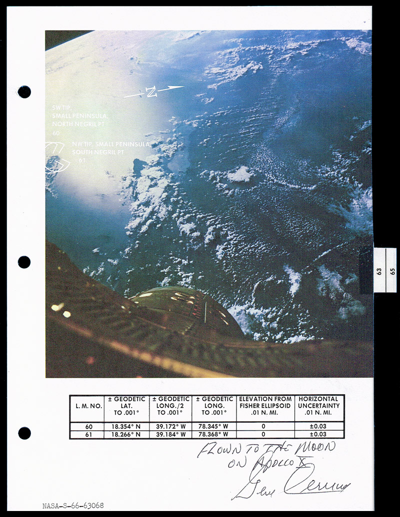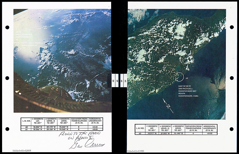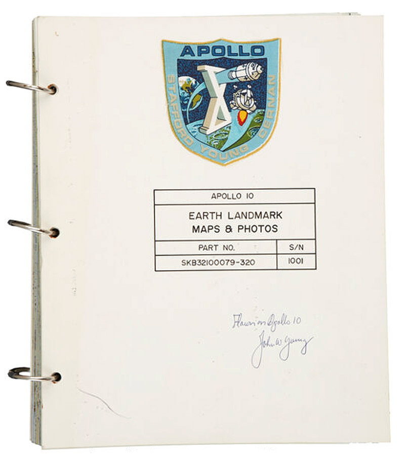 The overall checklist was retained by Apollo X CMP John Young until it was sold at auction in 2010. The maps have been subsequently signed and inscribed as flown by Apollo X LMP, Gene Cernan.