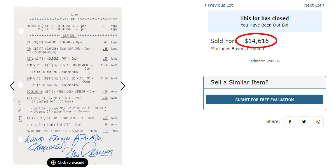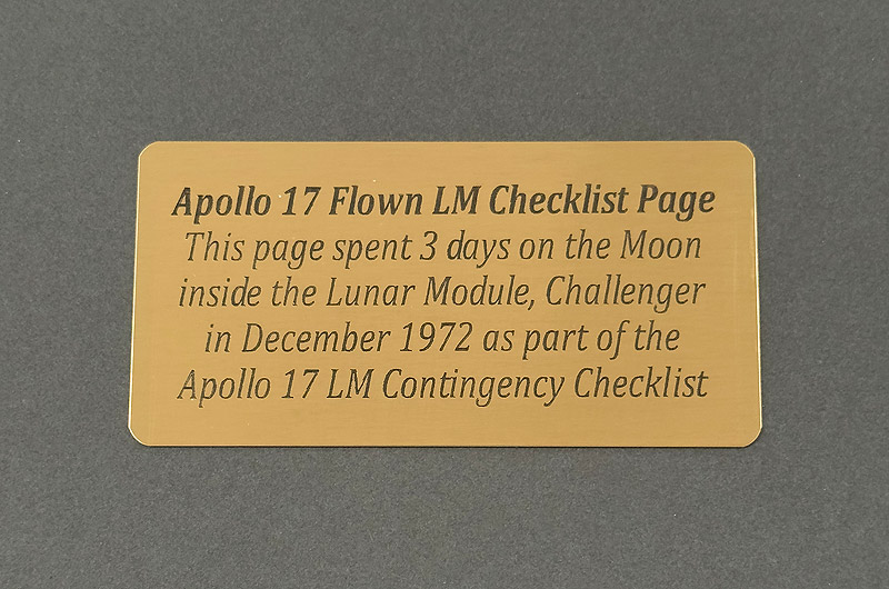 This Checklist Page was flown to the Lunar Surface during the