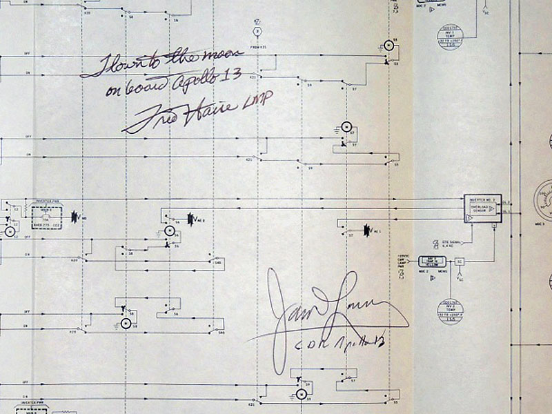 The Schematic has been signed and inscribed "Flown to the Moon On Board Apollo 13 - Fred Haise LMP" and "James Lovell - CDR Apollo 13".