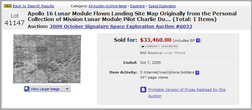This similar Flown Map Section from Apollo 16 sold at auction for over $33,000!!