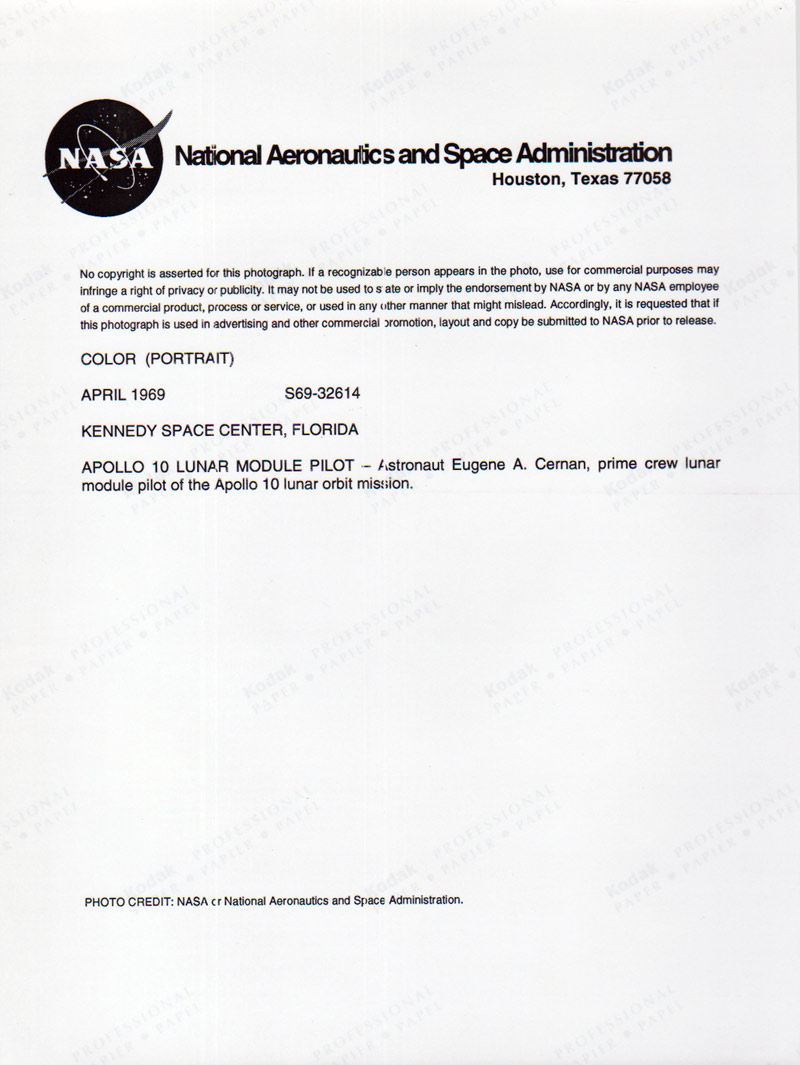 8x10 inch glossy photo of Gene Cernan in his White Space Suit, hand signed by Gene Cernan black pen, "Best Wishes From The Moon! Gene Cernan Apollo XVII"