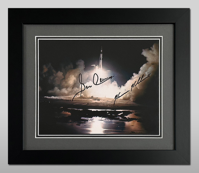 The spectacular night launch of Apollo 17 hand signed by Gene Cernan and Harrison Schmitt in black sharpie