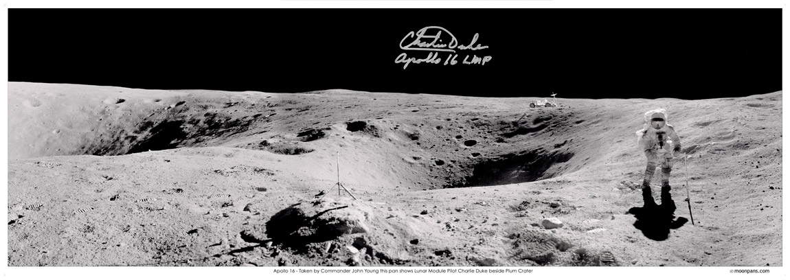 Charlie Duke signed 23x8 inch Plum Crater Panorama