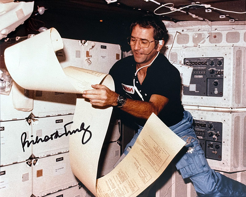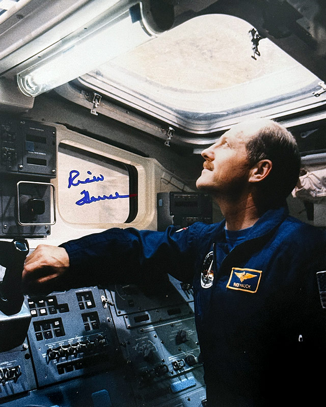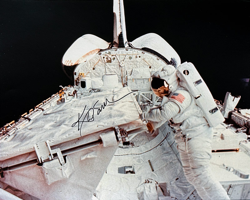 A collection of 11 color satin-finish photos hand signed by various Space Shuttle Astronauts in 8 x 10 and 10 x 8 inches, individually signed in felt tip by the astronaut pictured, with some adding their mission designation.
