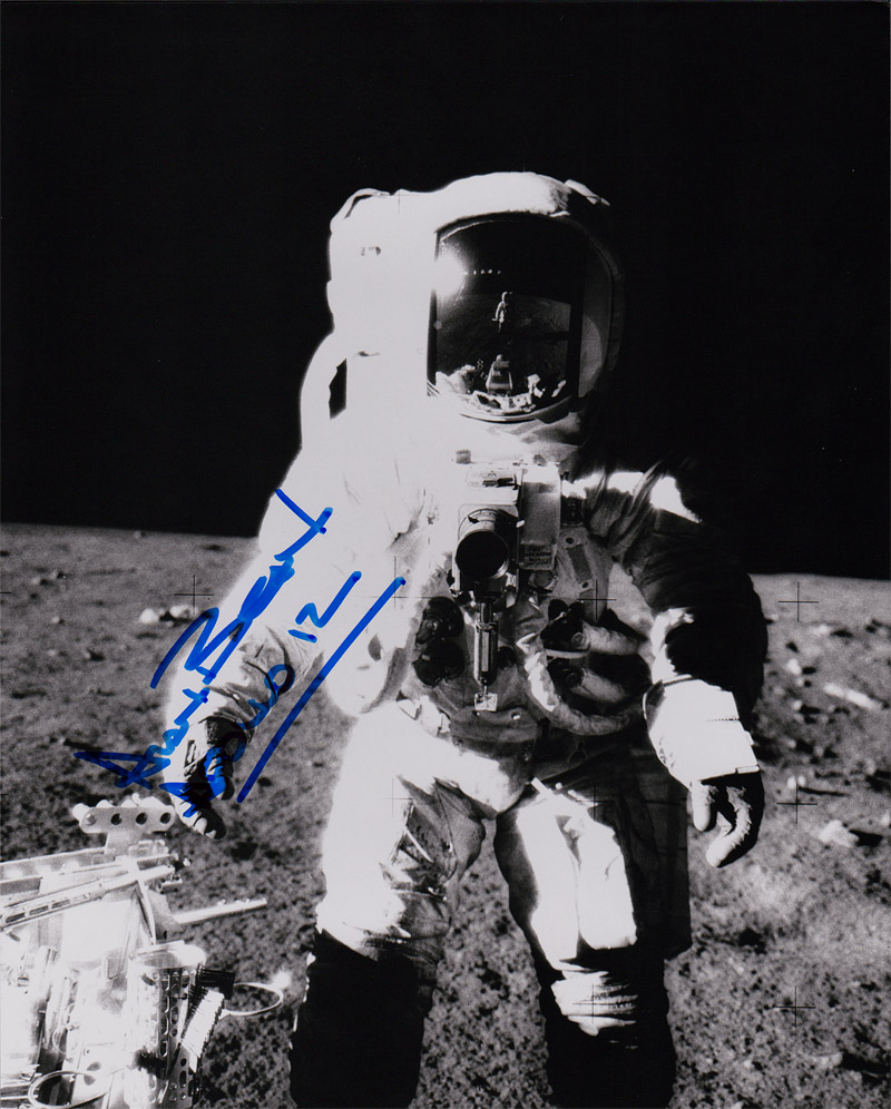 Hand signed by Alan Bean in bold blue pen ' Alan Bean - Apollo 12"