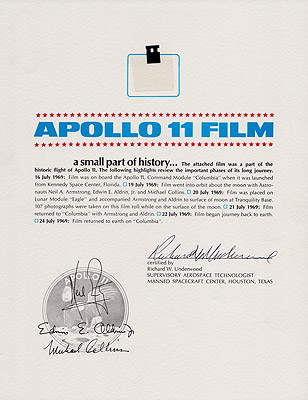 Contains a 35mm wide section of Apollo 11 Flown Coldplate and 14x11 inch Photo