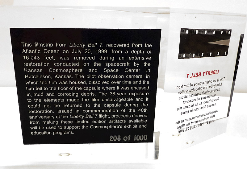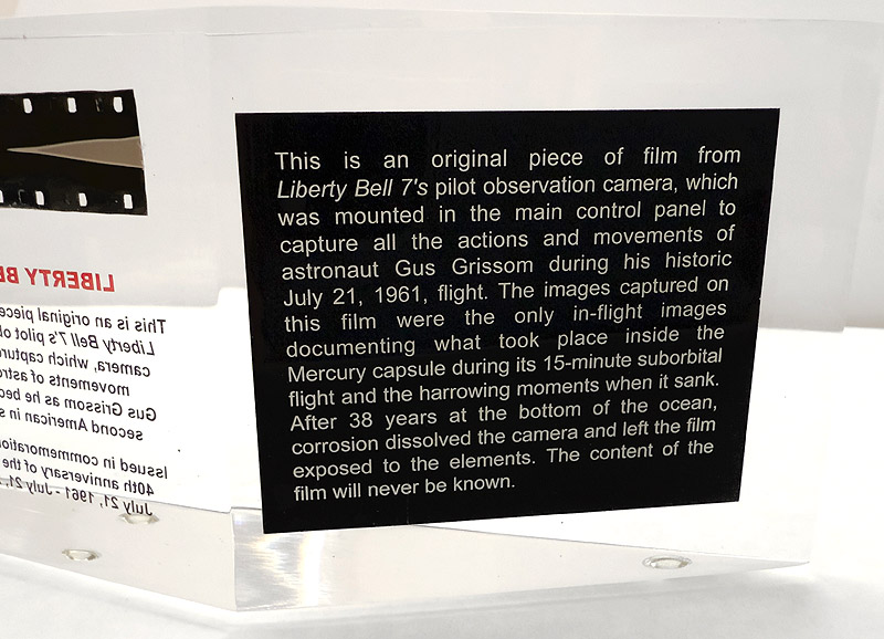 Flown original piece of film from Gus Grissom’s Liberty Bell 7 Mercury spacecraft, the 2nd manned US Space Flight