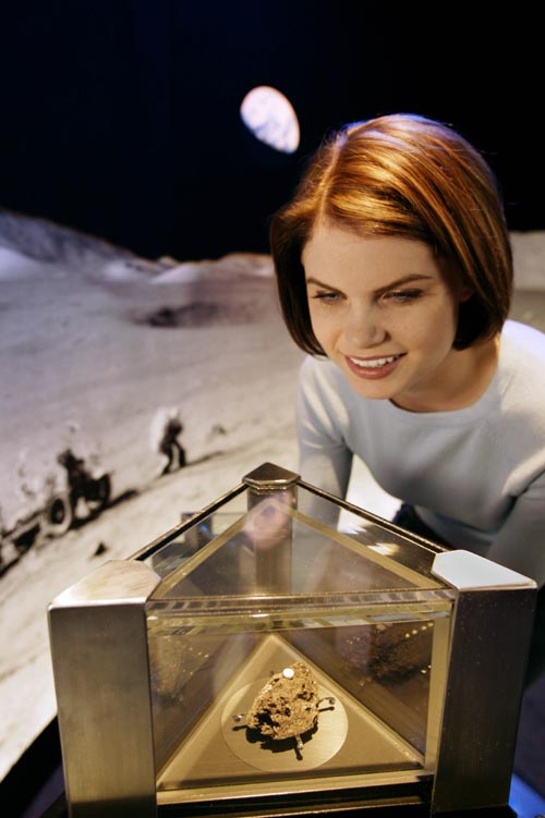 The new exhibition tour, Space: A Journey To Our Future, opened at the Pacific Science Center in Seattle on 22nd Nov. Highlights includes the chance to touch a piece of the moon, in the form of a Lunar Meteorite, and the display of a moon rock brought back by the Apollo 15 mission. These are both housed in a room dominated by a 25 foot Lunar panorama supplied by moonpans.com