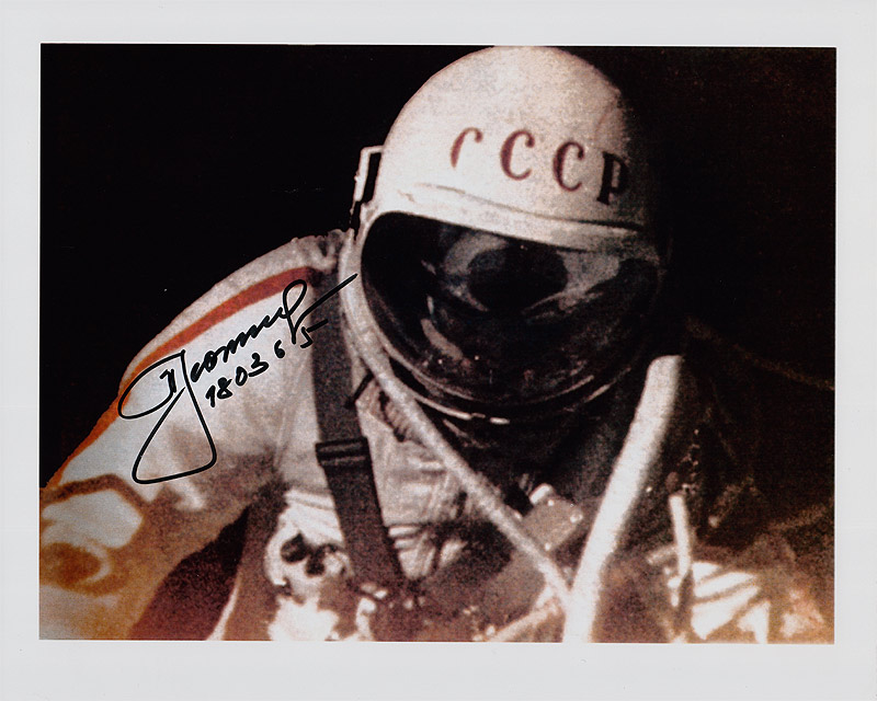 This 10x8 inch photo of Leonov performing the first ever spacewalk has been hand signed by Alexei Leonov in bold black pen with the date of the first space walk - "18-03-65"